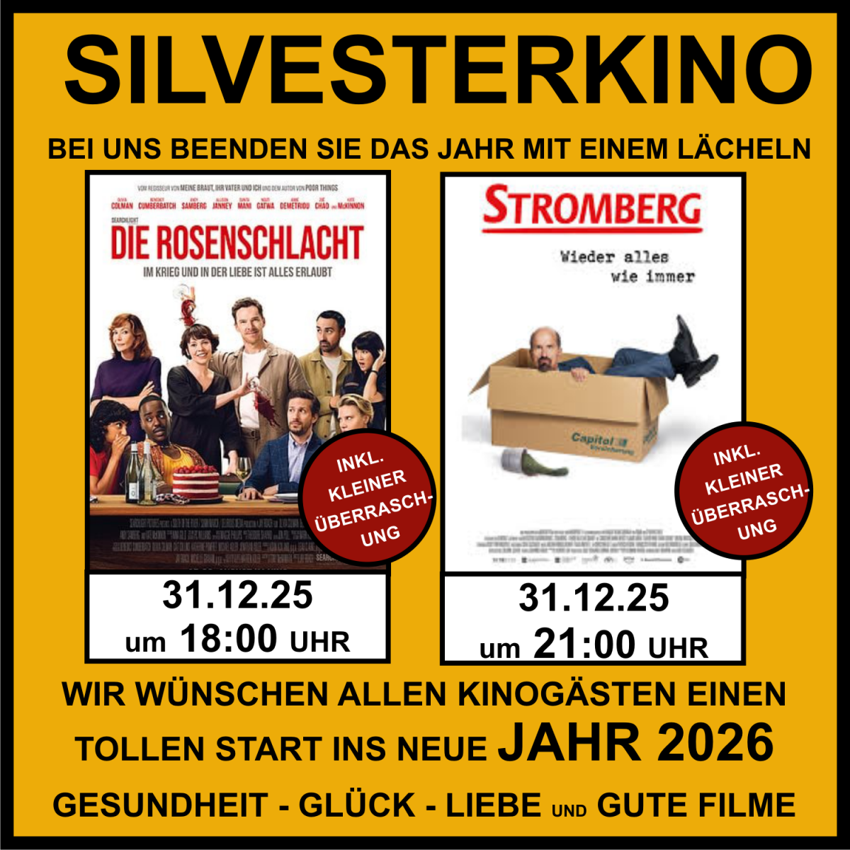FÜR SENIOREN UND FILMBEGEISTERTE WER MÖCHTE MIT KAFFEE & KUCHEN KINO = 6,00€ (BEI ÜBERLÄNGE 7,00€) KAFFEE & KUCHEN = 5,00€ (BITTE UNTER 09105 990 642 VORBESTELLEN)